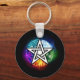 Artistically drawn, luminous pentagram with five magical elements, water, earth, fire, astral, air on black background. Wiccan pentagram. Wicca