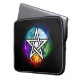 Artistically drawn, luminous pentagram with five magical elements, water, earth, fire, astral, air on black background. Wiccan pentagram. Wicca