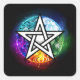 Artistically drawn, luminous pentagram with five magical elements, water, earth, fire, astral, air on black background. Wiccan pentagram. Wicca