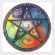 A5 pointed star in circle with pagan symbols for Earth, Air, Fire, Water and Soirit.