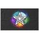 Artistically drawn, luminous pentagram with five magical elements, water, earth, fire, astral, air on black background. Wiccan pentagram. Wicca