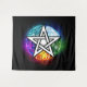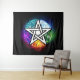 Artistically drawn, luminous pentagram with five magical elements, water, earth, fire, astral, air on black background. Wiccan pentagram. Wicca