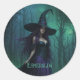 Wicked Halloween Witch in Purple and Black Name Classic Round Sticker