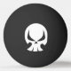 This ping pong ball has a skull on it. It is one of an assortment of four varieties of black skull table tennis balls obtainable from Superkalifragilistic.