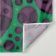 An array of variously sized purple circles overlays a vibrant green background, creating a visually striking pattern. The circular shapes have varying shades, adding depth and complexity to the design. Illustration design of trippy abstract purple and green slime holes. Tags: abstract, dots, geometric, crazy, green, purple, hallucinogenic, holes, psychedelic, lava, trippy, trypophobia