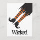 A whimsical Halloween design featuring a tilted witch's lower half with black skirt, striped stockings and black boots. You can edit the text on this post card by replacing the sample text shown in the design template. To change fonts or font size, select the "customize it" button.