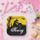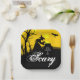 A wicked witch and her cauldron, a black bat, picket fence and bare tree silhouetted against a spooky sky these Halloween party square paper plates feature the words "Eat, Drink & Be Scary." MATCHING items in our store.