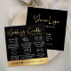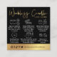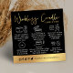 Elegant Wickless Candle Safety Guide with modern script font in faux gold and candle care icons. This black and gold no-wick candle care instructions cards includes safety tips and a guide on how to use flameless candles. You can add your logo and business details on the back and make this wickless candle warning card the perfect addition to your candle boutique packaging design.
