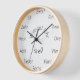 This clock for German teachers and students shows you how to ask the time with the question "Wieviel Uhr ist es?" and German numbers from 1 to 12. Feel free to customize the centre text and upload a background photo or colour (as a square image) to make this clock suit your personal style or usage.