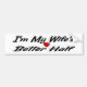Bumper sticker with I'm my wife's better half in 3D black text.