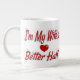 Mug with I'm my wife's better half in 3D red text.