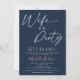 Elegant yet simple. This bachelorette party invitation features the fun heading 'Wife of the Party' in white calligraphy script on a trendy navy blue background that can be changed to any color. The modern template is easy to customize.