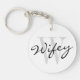 WIFEY keychain for wedding bride and newlywed wife. Cute black and white monogram design with stylish script typography. Funny key chain accessory honeymoon gift for just married women. Black and white colours.