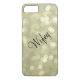 C'est un coque amusant et brillant iPhone 7 accentué avec Wifey, écrit dans un script sophistiqué sur un arrière - plan bokeh or. Note : aucune parties scintillant ou paillettes n'est utilisée pour faire ce coque, l'arrière - plan or brillant est une illustration photo. Ce coque est facile à personnaliser avec votre nom, monogramme, ou Mme si vous préférez.