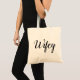 These bags were super cute (I purchased 3). The material is more of a canvas look & feel. The colour of the bag is slightly off white, but the letters look exactly as pictured. I took 3 photos in different lighting. Would recommend! I liked how there was an option to choose the font and colour of the name. The words are legible and the colours are exactly as pictured.