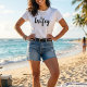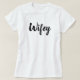 Cute and simple "wifey" shirt in a chic Black script. Makes a great bridal shower, bachelorette party or wedding gift for the future Mrs. !