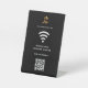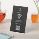 Black background. Personalize and add your business logo, name, wifi details, qr code to connect.