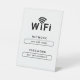Stop saying your WiFi password aloud. This simple pedestal sign displays your network name and password on your tabletop for instant, stylish guest access. Perfect for homes, Airbnbs, offices, and cafes.