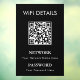 A modern and minimalist WiFi sign designed for businesses, hotels, restaurants, and Airbnb accommodations. Easily customize with your WiFi name, password, and QR code for a seamless guest experience. Ideal for reception areas, cafes, and offices, allowing visitors to connect instantly by scanning the QR code.