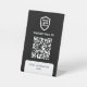 A simple custom Black business scan to Sign In wifi QR code pedestal sign in a modern minimalist style.