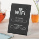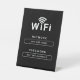 A sleek, modern black tabletop sign that displays your WiFi network and password in clean, minimalist style. Perfect for offices, reception desks, coffee shops, and contemporary homes. Just set it down—guests can log in instantly, no questions asked. Customize with your network details for a seamless, professional look.