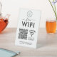 WIFI business company pedestal sign featuring your logo, a QR code for you to replace with your own, and your wifi network and password details.