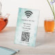 Elevate your space with this minimalist modern table sign, offering a hassle-free way for guests to connect to your WiFi. Upload your personalized QR code and logo, and seamlessly display your network name and password in crisp white lettering. A stylish, functional touch for any setting—perfect for businesses, cafes, or events.