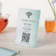 A modern and simple black table sign that allows your customers, clients and guests to easily connect to your WiFi network. Upload your QR code and logo, and add other details like your network name and password in white lettering.