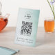 A modern and simple black table sign that allows your customers, clients and guests to easily connect to your WiFi network. Upload your QR code and logo, and add other details like your network name and password in white lettering.