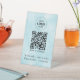 A modern and simple black table sign that allows your customers, clients and guests to easily connect to your WiFi network. Upload your QR code and logo, and add other details like your network name and password in white lettering.