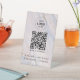 A modern and simple black table sign that allows your customers, clients and guests to easily connect to your WiFi network. Upload your QR code and logo, and add other details like your network name and password in white lettering.