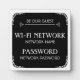 Clear square sign for wifi connection details for a guest bedroom or a place of business.