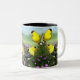 Original fine art design of colourful American Goldfinches by artist Carolyn McFann printed on a quality mug for wild bird lovers.