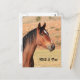 This postcard features a gorgeous image of a wild bay mustang with a distinctive white blaze. This photograph was taken in northern Colorado, USA. The text currently says, in black, "Wild & Free" but is customizable, so you may make it say whatever you'd like, or remove it completely.