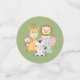 Fun and cute baby boy shower table decor. This confetti set features various illustrations of baby jungle animals (lion, elephant, zebra, monkey and giraffe), a safari vehicle and a paw print. You can personalize the mother-to-be's name, "Baby Shower," "It's About to Get Wild" and "Thanks for Driving By" in fun coordinating army green and white scripts. You can also personalize the "Oh Baby! It's a Boy!" text on the safari vehicle and add the shower date on the large piece.