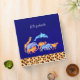A binder designed with an exotic orange coloured leopard print border along the bottom. Illustrated with a digital watercolor image of a herd of wild animals