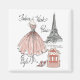 This elegant design offers a fun nod to Paris Fashion Week. An haute couture gown straight from the runway is the star of the show in this vintage style print. A bundle of beautifully wrapped gifts and cute pink stilettos add some girly fun. A stunning silhouette of the iconic Eiffel Tower in the background adds a touch of ooh la la to this chic design. | Fashion Week III on White by Anne Tavoletti