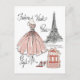 This elegant design offers a fun nod to Paris Fashion Week. An haute couture gown straight from the runway is the star of the show in this vintage style print. A bundle of beautifully wrapped gifts and cute pink stilettos add some girly fun. A stunning silhouette of the iconic Eiffel Tower in the background adds a touch of ooh la la to this chic design. | Fashion Week III on White by Anne Tavoletti