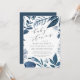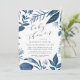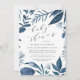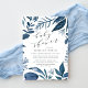 Our Wild Azure baby shower invitation features your baby shower details in chic off-black, framed by painted watercolor foliage in icy shades of navy and sky blue. A fresh take on the botanical trend with wintry leaves and elegant calligraphy accents.