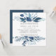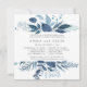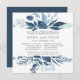 Our Wild Azure rehearsal dinner invitation in a unique square format frames your ceremony rehearsal and celebration details with a top and bottom border of winter watercolor foliage and leaves in icy shades of blue.