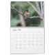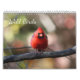 The birds pictured are in order of months: Tufted titmouse, female Cardinal, American Robin, Black-capped Chickadee, Grey Catbird, male Cardinal, American Goldfinch, Ruby-throated Hummingbird, House Sparrow, Dark-eyed Junco, Downy Woodpecker, and White-breasted Nuthatch.