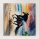 Black stallion horse galloping on the beach, beautiful watercolor painting.