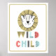 Adorable Scandinavian style folk art in both the sweet lion graphic and the letters that spell out "wild child"