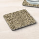 This elegant beverage coaster features a high-impact leopard print pattern in classic neutral tones. The design uses bold black spots with a subtle brown/tan shadow on a warm cream or beige background, creating a sophisticated wildlife aesthetic.