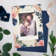 Fresh, elegant watercolor florals in vibrant navy blue and sweet blush pink are accented with soft antique golds. These photo save the dates were designed to match our Wild Elegance Navy, Blush & Gold wedding invitation collection.