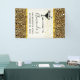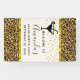 A bachelorette party welcome banner with a stylish pattern. Exotic black leopard spots on a gold background. Wild yet elegant style. A black silhouette martini glass adds a party flair to the design. Faux gold foil borders frame the party text. Faux gold confetti also decorates the design.