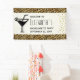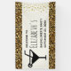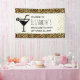A bachelorette party welcome banner with a stylish pattern. Exotic black leopard spots on a gold background. Wild yet elegant style. A black silhouette martini glass adds a party flair to the design. Gold confetti image along the side.