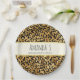 Bachelorette paper plates with a stylish pattern. Exotic black leopard spots on a gold background. Wild yet elegant style.