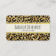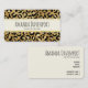 Business cards with a stylish pattern. Exotic black leopard spots on a gold background. Wild yet elegant style. The middle portion of the business card has a cream coloured border, faux gold foil stripes along the border and your personalized text inside.