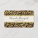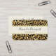 Business cards with a stylish pattern. Exotic black leopard spots on a gold background. Wild yet elegant style. The middle portion of the business card has a cream coloured border, faux gold foil stripes along the border and your personalized text inside.